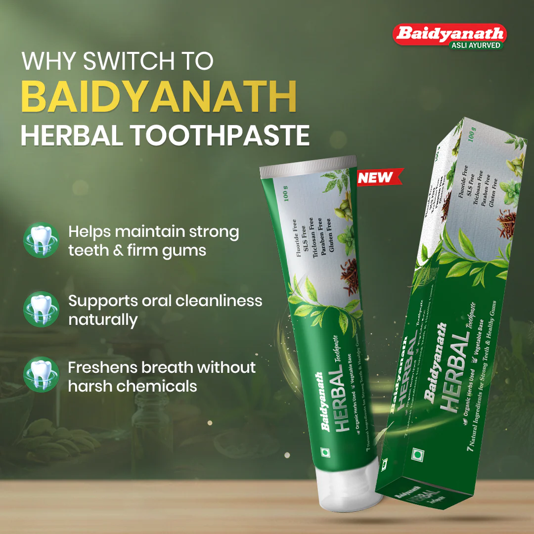 Baidyanath Herbal Toothpaste 100 g (Pack of 2) | Fluoride-Free, SLS-Free Ayurvedic Toothpaste with Neem & Clove for Strong Teeth & Healthy Gums